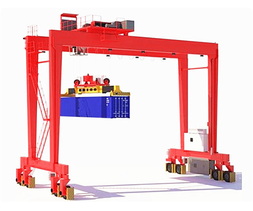 Rubber Tired Gantry (RTG) cranes are specialized types of mobile gantry cranes that are used in container handling operations in ports, terminals, and intermodal yards. They are designed to lift and move containers within the terminal yard or stacking area, and are commonly used for stacking, organizing, and transferring containers between storage areas, trucks, and railcars.