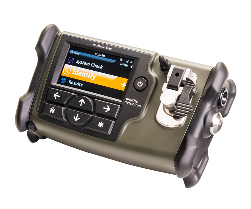 HazMatID Elite is a ruggedized hand-held Fourier Transform Infrared (FT-IR) identifier of solid and liquid chemicals.